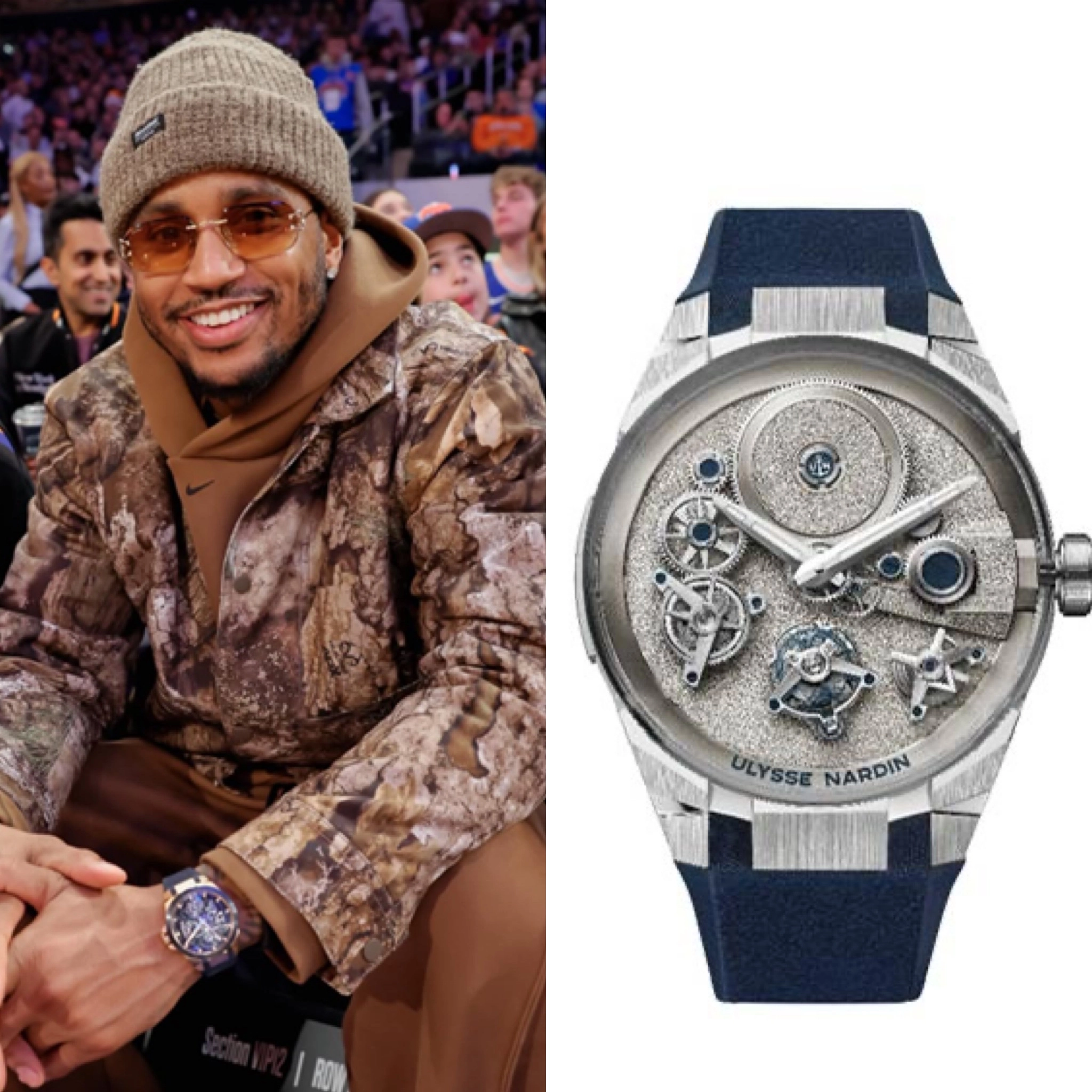 R&B singer and songwriter Trey Songz was spotted at a New York Knicks game at Madison Square Garden wearing a Ulysse Nardin Blast Free Wheel Maillechort, a perfectly casual tourbillon for a perfectly casual courtside seat.