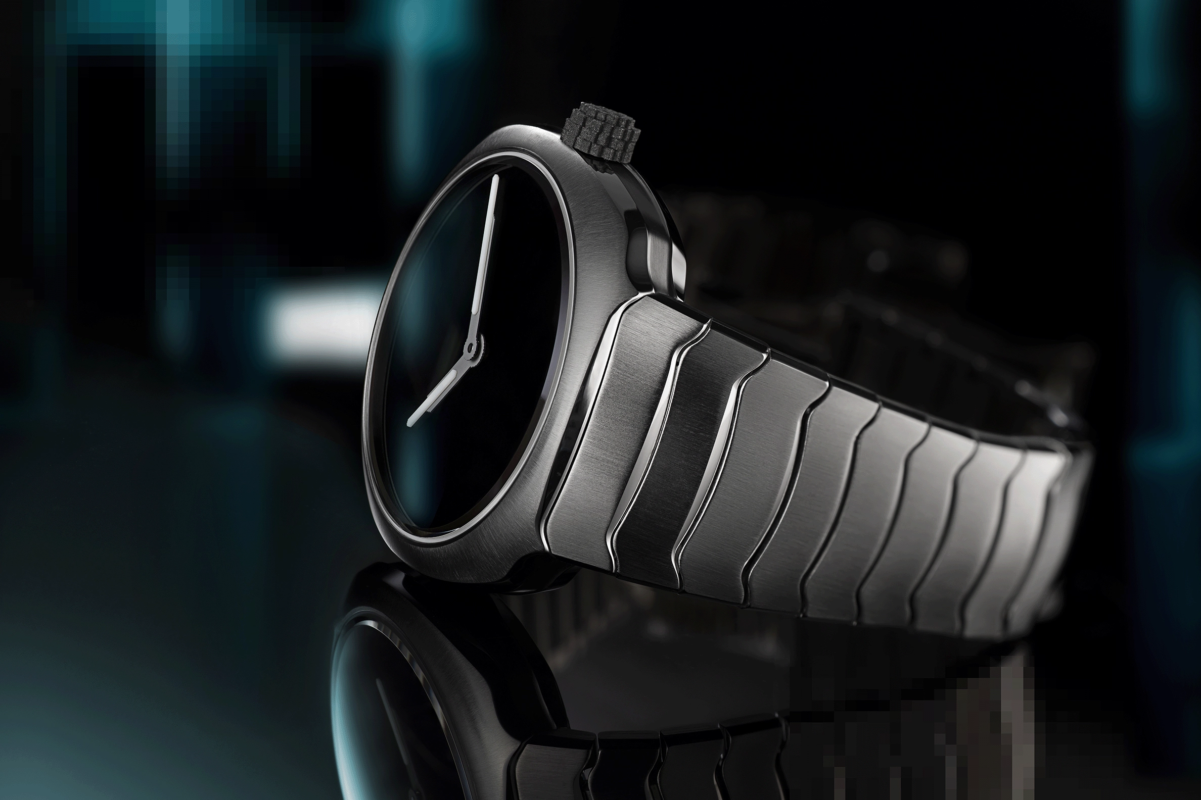 H. Moser & Cie introduced the latest in their Streamliner line, the Genesis 2. Limited to 100 pieces, this strikingly sleek timepiece features a steel case and bracelet, a Vantablack dial, and a 3D-printed titanium crown, as well as a sapphire caseback for admiring the movement.