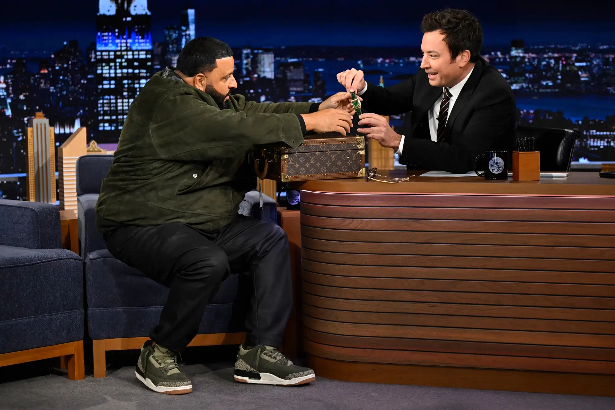 DJ Khaled joined Jimmy Fallon as a guest on The Tonight Show, where the two had an appropriately nerdy watch discussion. Fallon showed off his Cartier Time Peace limited edition, while DJ Khaled, wearing a Patek Philippe Nautilus LE, reached over behind his chair to grab an entire case of watches full of Rolex and Audemars Piguet pieces, which he then showcased to the host and audience.