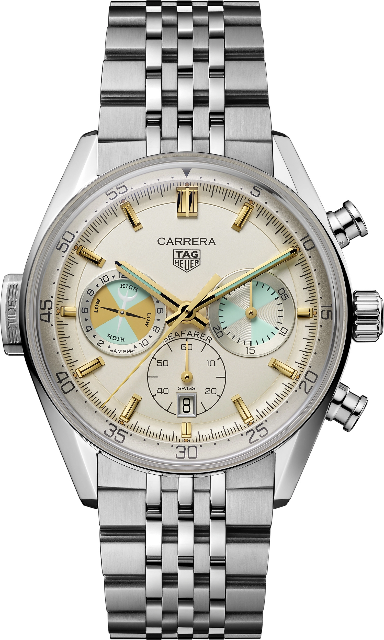 TAG Heuer announced three new pieces for LVMH Watch Week: the Carrera Split-Seconds Chronograph, the Carrera Chronograph, and Carrera Seafarer. The Seafarer looks back at the brand’s history, when the original ‘Seafarer’ tide watch was released in 1949. The new model brings back the tide indicator into the Carrera Glassbox form factor that TAG Heuer introduced in 2023.