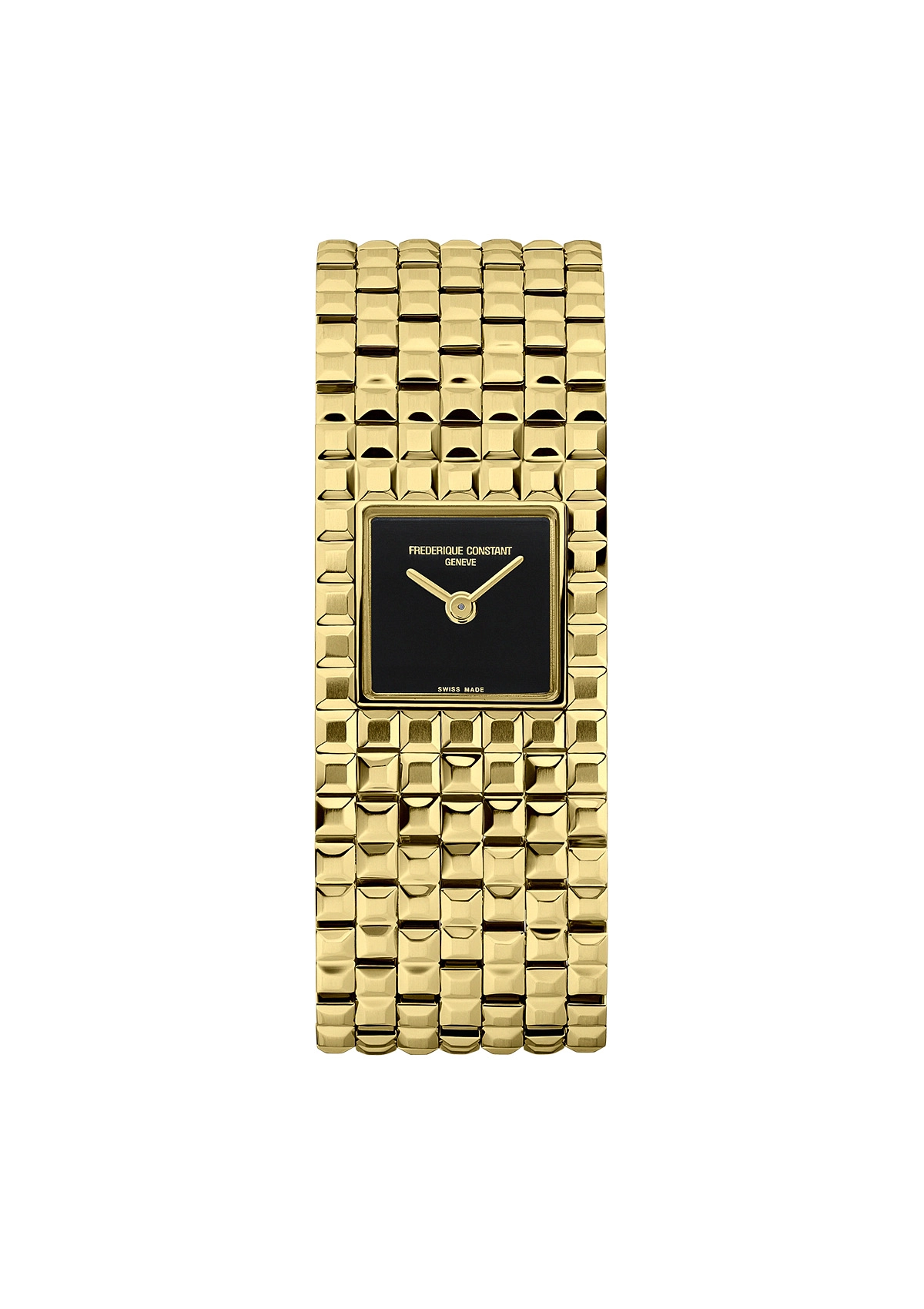 Frederique Constant released its Gilded Classics Manchette, a timepiece geared towards ladies with an effortlessly cool but classic feel. This version of the Classics Manchette carries a little bit of a rock-and-roll feeling, with a gold-colored cuff in a Clou de Paris pattern and a deep black onyx dial.
