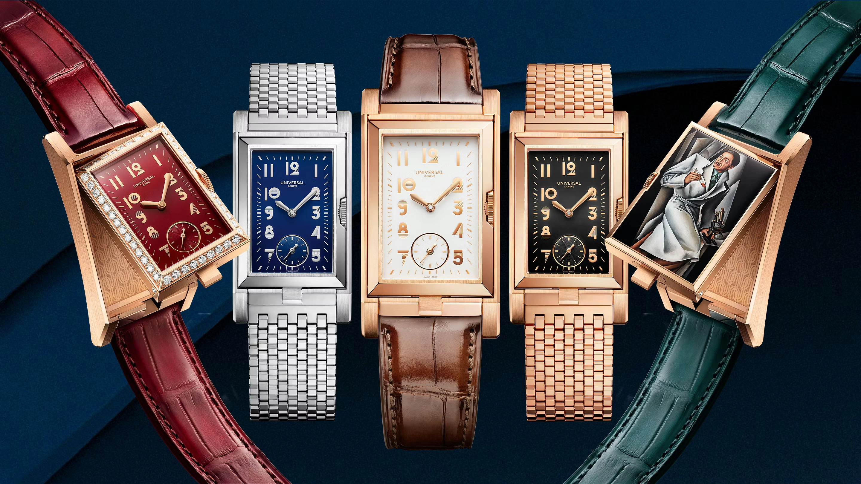 Universal Genève is also bringing back the Cabriolet, originally named the Ideo when it was introduced. These watches feature a reversible construction that is hinged so that the dial can be reversed to display what’s on the back. The Cabriolet collection has five pieces, four in the Prêt-à-Porter collection, and one in the Capsule, called the Cabriolet De Lempicka, that features hand-painted miniatures of Tamara de Lempicka's artwork on its 18K rose gold case. The Prêt-à-Porter versions have blue, white, black, or red dials in either a steel or rose gold case. All models in the Cabriolet collection are powered by an in-house manually-wound Calibre UG-111.