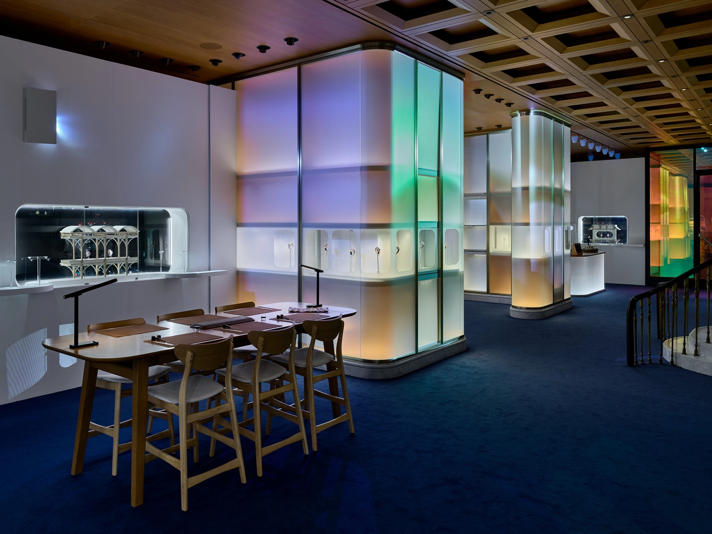 At their flagship store in New York City, Hermès is presenting Hermès Time Suspended, an exhibition of the depth and breadth of the maison’s watchmaking. The immersive experience was conceived by artist Sarah-Anaïs Desbenoit, who also designed the original experience debuted at Watches and Wonders in Geneva earlier this year. The exhibition demonstrates the technical watchmaking prowess of the maison with displays of its complicated watches and demonstrations by a watchmaker, stunning examples of their fine jewelry watches, and a deep dive into the artistic craftsmanship of their dialmaking, including live demonstrations of their unique leather marquetry.