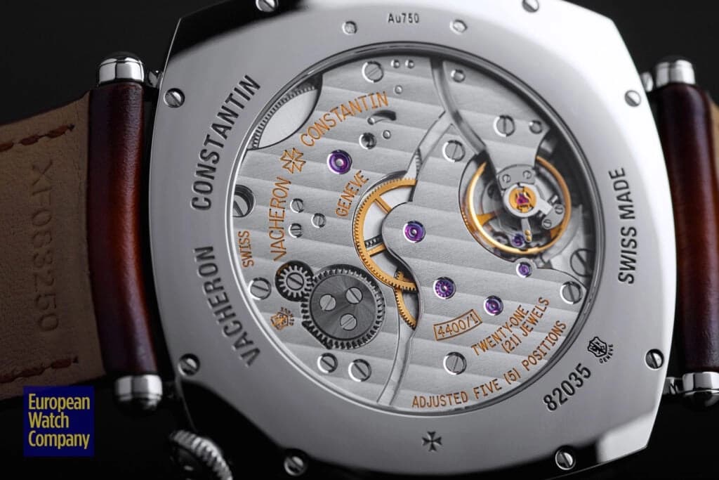 Powering the Historiques American 1921 is the Vacheron Caliber 4400 AS, a manual winding movement with a 65-hour power reserve. It’s on display through a sapphire caseback, where one can see the deceptively simple movement decorated with anglage, perlage, and Côtes de Genève. If the visual beauty isn’t sufficient enough to demonstrate the quality, one can always check the Poinçon de Genève—the Geneva Seal—located at 11 o’clock and certifying the caliber of the finishing.