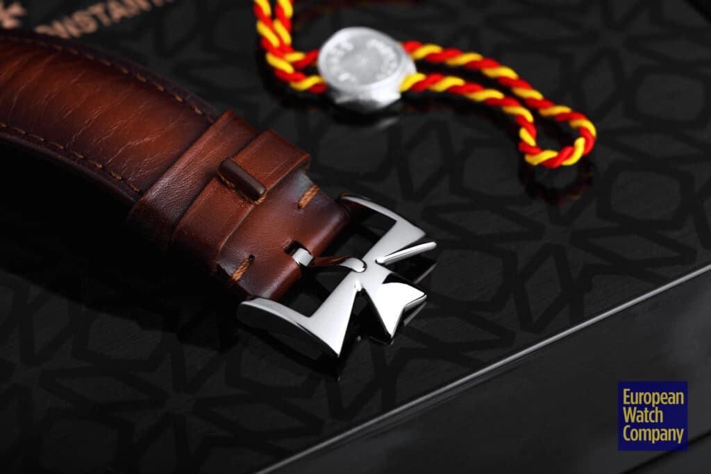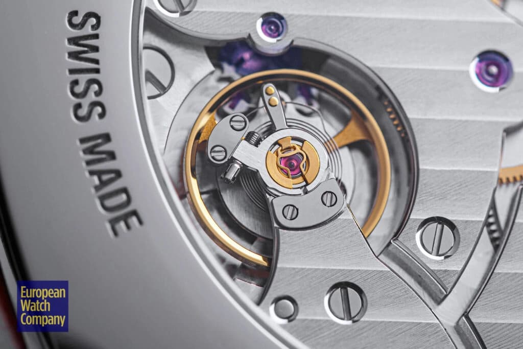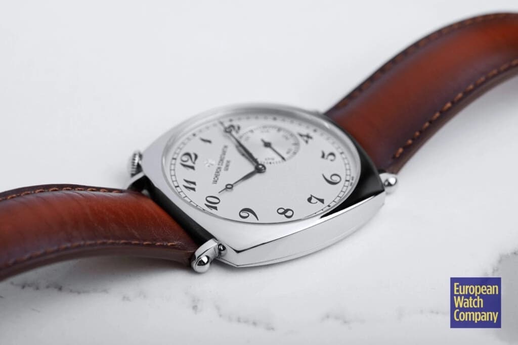 The current offering is polished on every surface, including the convex case top, which keeps it consistent with the intended elegance of its forebears. The first thing one notices—and the hallmark of the model’s case—is the branded crown at 1:30, positioned in line with the 12 o’clock numeral. Much more subtle is the slim curved lugs, with scroll ends and, curiously, false round bolts on the outside. With a flat, polished, screwed-down caseback, the Historiques American 1921 sits at a wafer-thin 8mm. The entire package is attached to a brown leather strap with a Maltese Cross tang clasp.