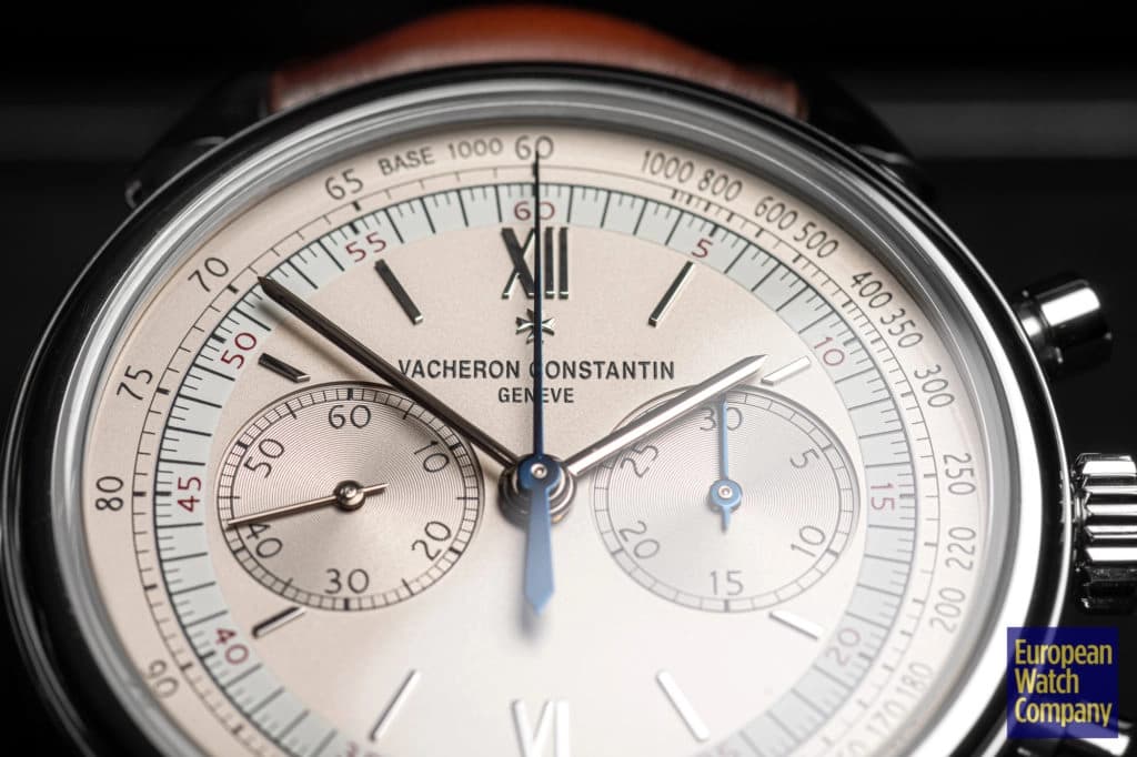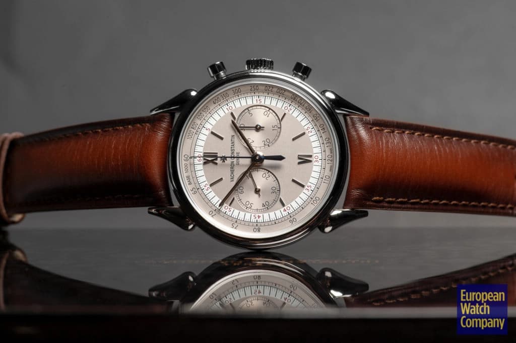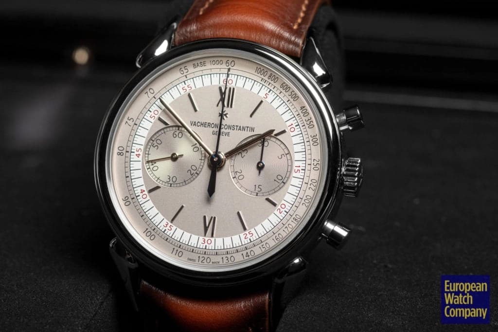 The Historiques Cornes de Vache 1955 Chronograph reference 5000H/000A-B582 is based on the Vacheron Constantin reference 6087 released in 1955. The watch was Vacheron’s first water-resistant chronograph, and it introduced a new take on the teardrop watch lug style that hadn’t been seen before. The now legendary “cow horn” lugs give the timepiece a distinctive look that sets it apart.