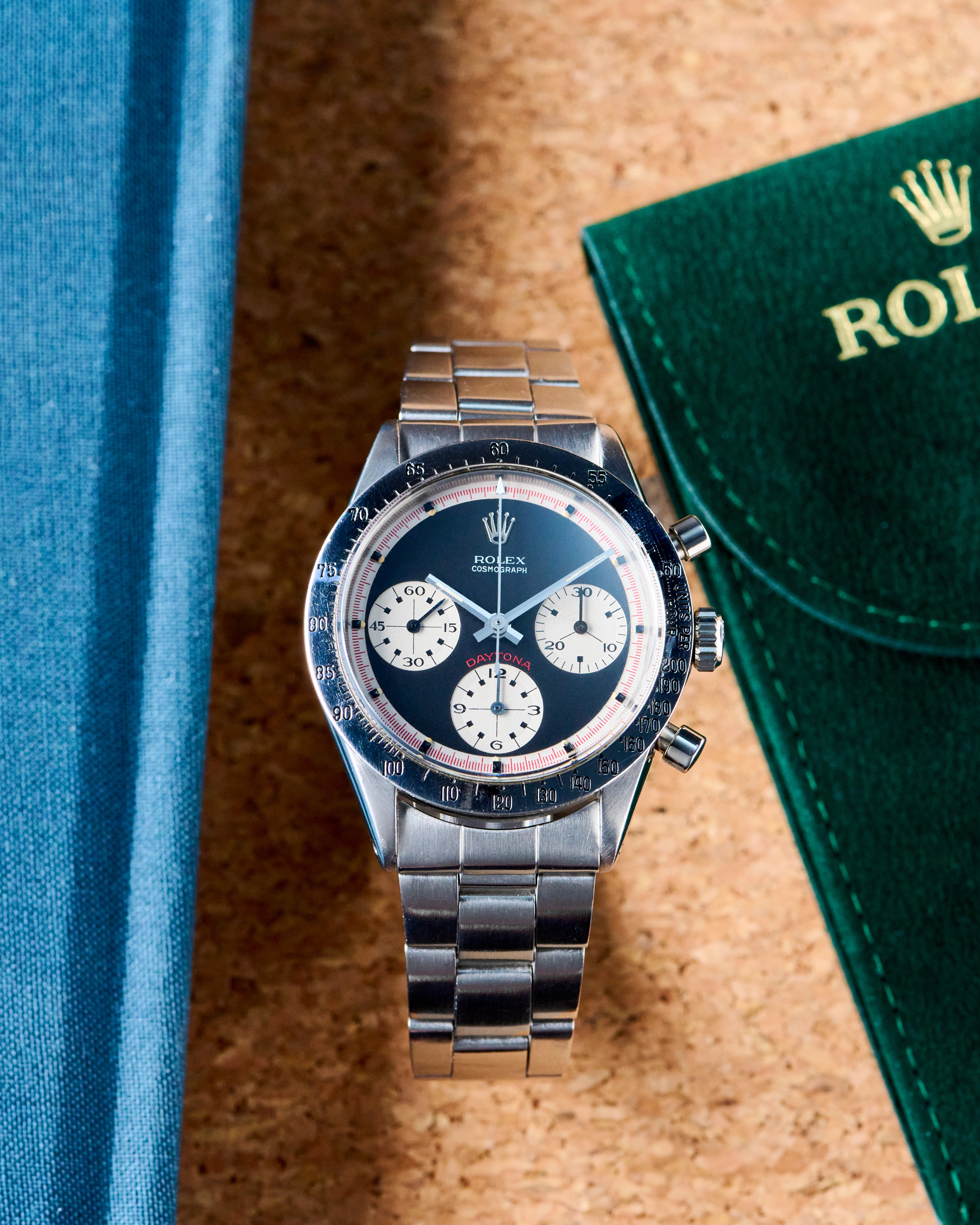 One example is the Paul Newman Rolex Daytona ref. 6239, engraved on the caseback with the message “DRIVE CAREFULLY, ME.” Coblitz explained that the watch resonates on several levels at once. “This watch carries multiple meanings to me, firstly as its ownership by Newman is the ultimate Rolex Daytona, which is my favorite watch from a general aesthetic perspective,” he said. He added that Newman’s cultural gravity only amplified that status, noting how “Newman’s cool factor helped the model invariably become notable.”
