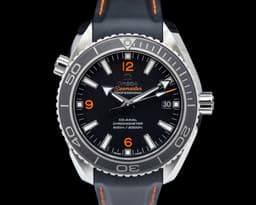 Omega Seamaster Co-Axial Planet Ocean 232.32.42.21.01.005, 23232422101005, stainless steel case on a strap with a stainless steel tang buckle, chronometer rated Omega caliber 8500 movement, 60-hour power reserve, date at 3 o'clock, central sweep seconds hand, rotating bezel, black dial, luminous hands and hour indicators, sapphire crystal, display back, water resistant to 600 meters. Diameter: 42mm, Thickness: 16.3 mm. Like New with Omega box and papers dated 2013.